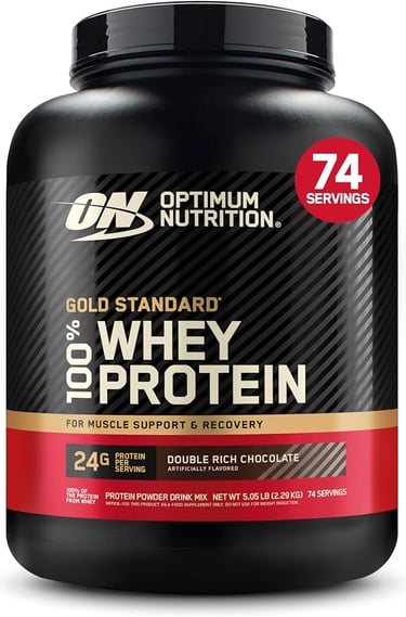 مزيج من مسحوق البروتين جولد ستاندرد بنسبة 100% - بروتين ممزوج بوزن 24 جرام يتكون من بروتين مصل اللبن المعزول ومركز بروتين مصل اللبن وببتيدات مصل اللبن لدعم العضلات ولهذا يسمونه جولد ستاندر، جودة تفوق أي جودة أخرى